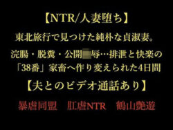 【NTR/人妻堕ち】東北旅行で見つけた純朴な貞淑妻。浣腸・脱糞・公開陵●…排泄と快楽の「38番」家畜へ作り…【暴虐同盟】 東北旅行で出会った純朴な人妻が、排泄と快楽の果てに家畜へと堕ちていく。浣腸、脱糞、公開陵辱…彼女が辿る、38番の過酷な運命。暴虐同盟が贈る、スカトロ・アナル・中出しの果てしない快楽と屈辱の世界。 同人