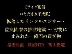 【ライブ配信・いただき女子成敗】転落したインフルエンサー・佐久間栞の排泄地獄 〜 汚物にまみれた一億円の貢…【暴虐同盟】 人気インフルエンサー・佐久間栞の汚辱の日々が明らかに。転落した彼女を待ち受けていたのは、排泄の果てしない地獄。汚物まみれの一億円の貢ぎが、彼女のすべてを奪っていく。暴虐同盟が贈る、衝撃のライブ配信・いただき女子成敗シリーズ。 同人